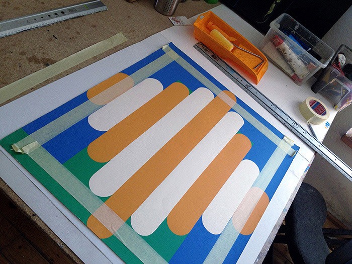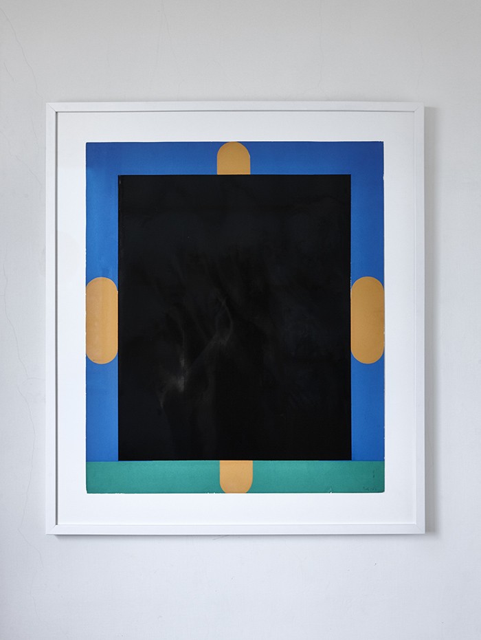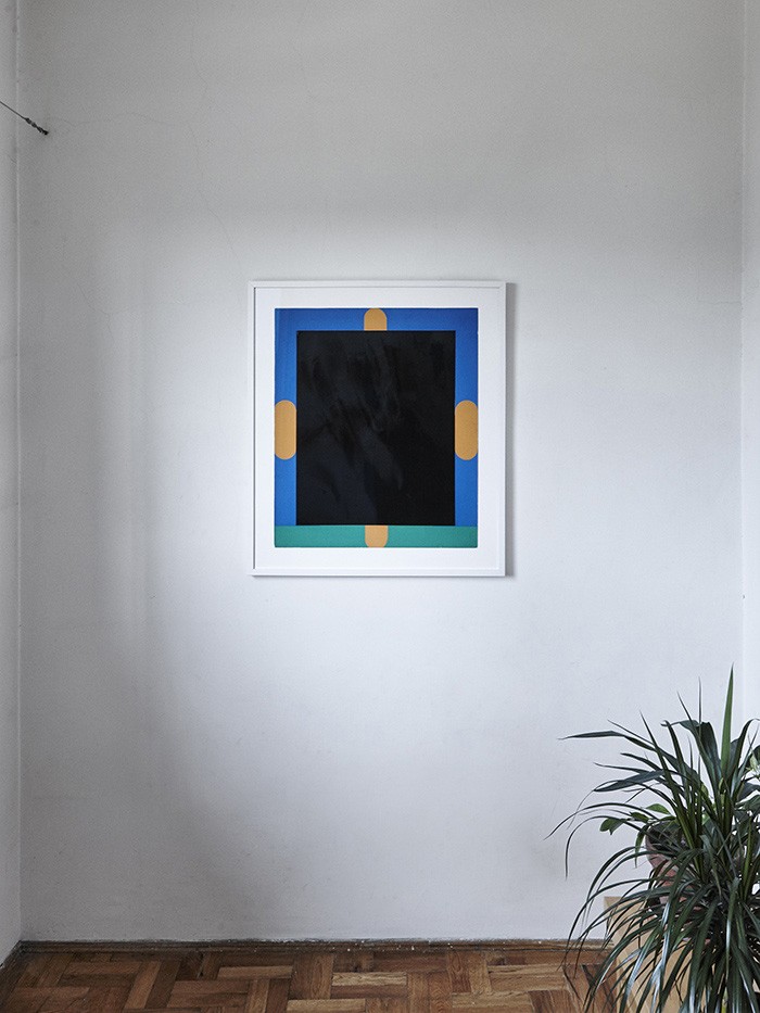 The artist revived this story in an interpretation of Imre Bak, one of the most significant representatives of Hungarian geometrical abstract painting and an artist who is regarded as an exemplary master. Lőrinc Borsos’s attention was drawn to Bak by this and by instances of censorship in the past that constitute the subject matter of the exhibition Red Tail Blue Pencil (part of the 1st OFF Biennale Budapest) where he was invited. An abstract painting by Imre Bak was removed from the 1967 annual exhibition of the Studio of Young Artists, in other words it was censored due to cultural political considerations. For the exhibition the artist decided to censor a work by Bak, overpainting it with Blaek.