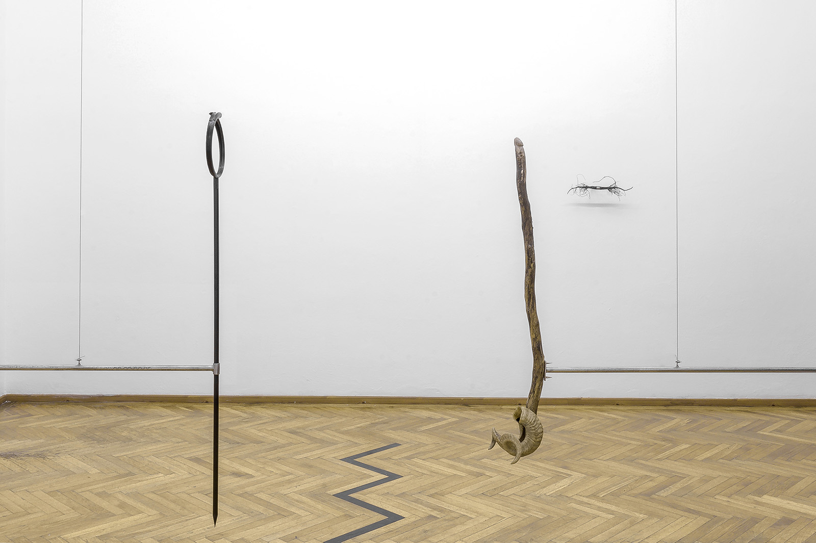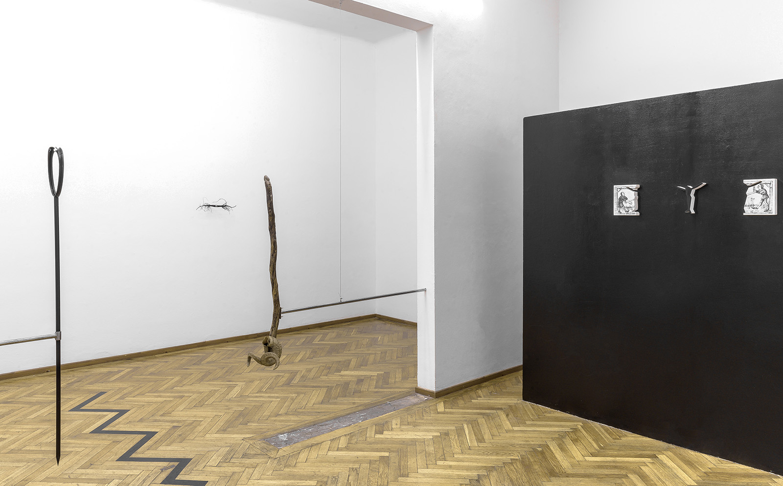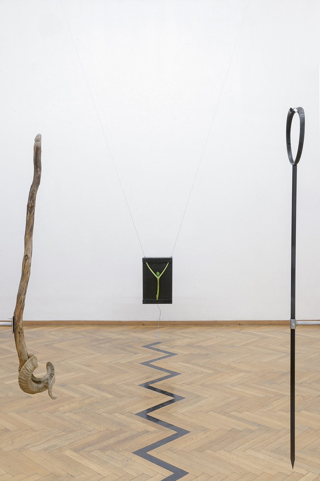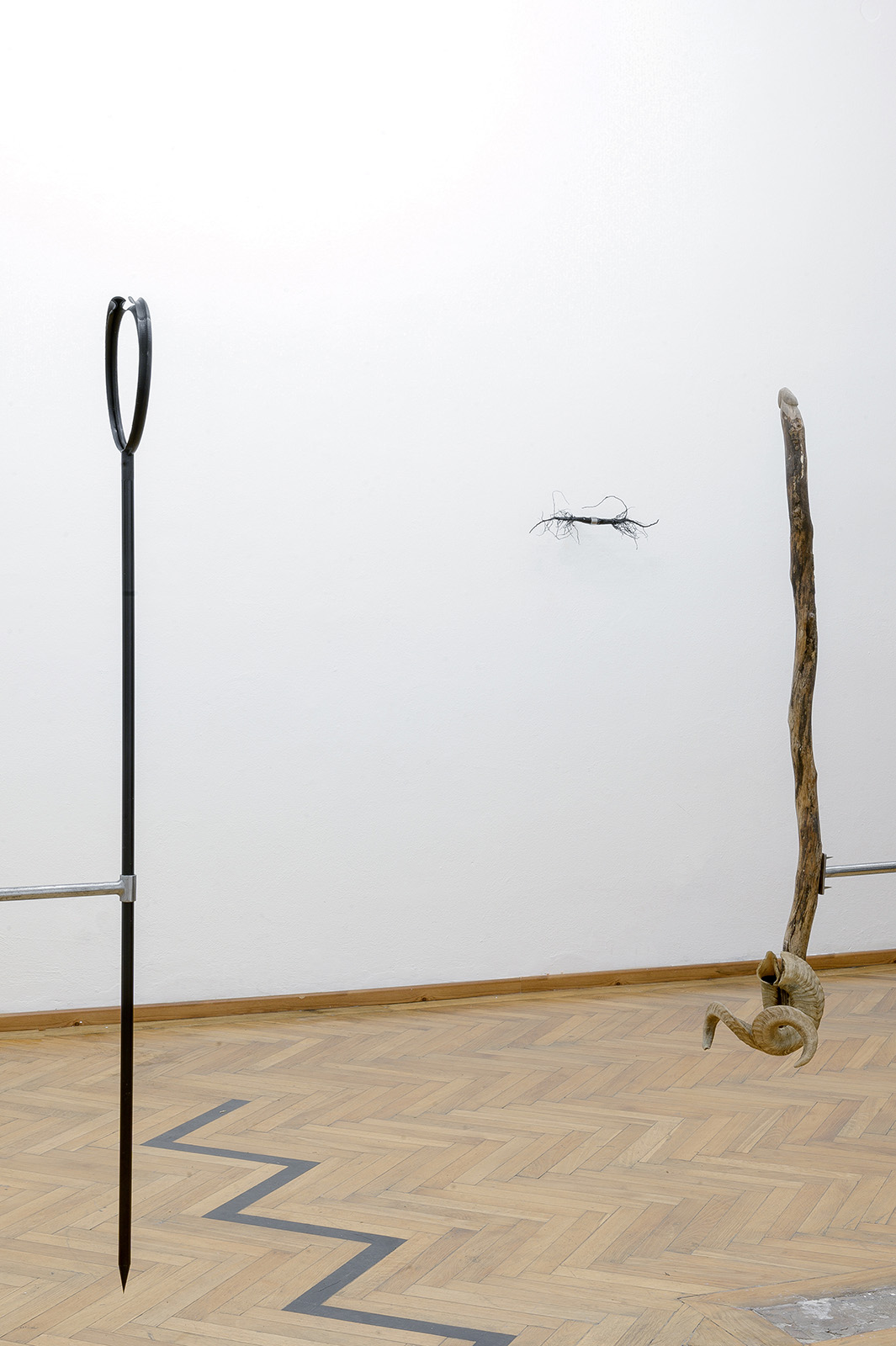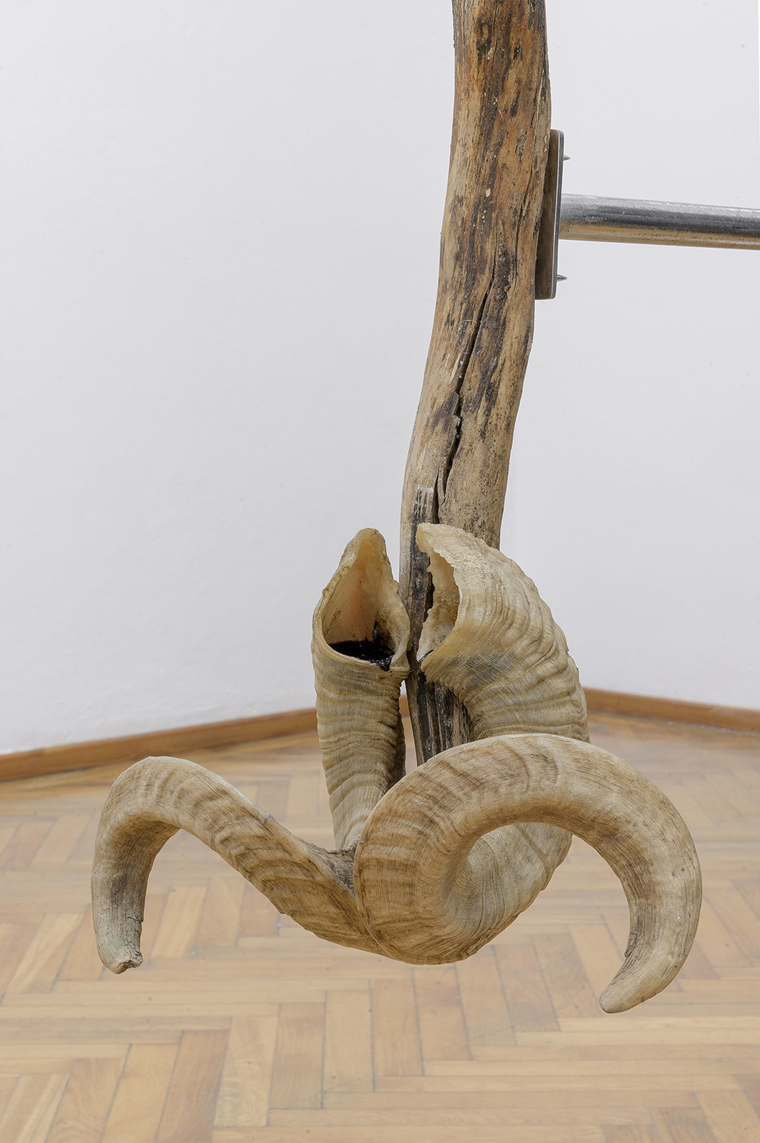 wood, horns, enamel paint, metal, variable size