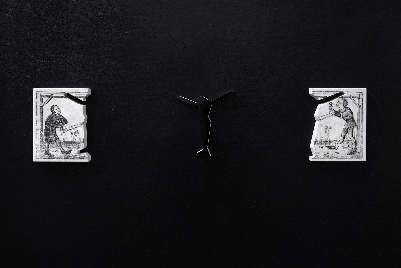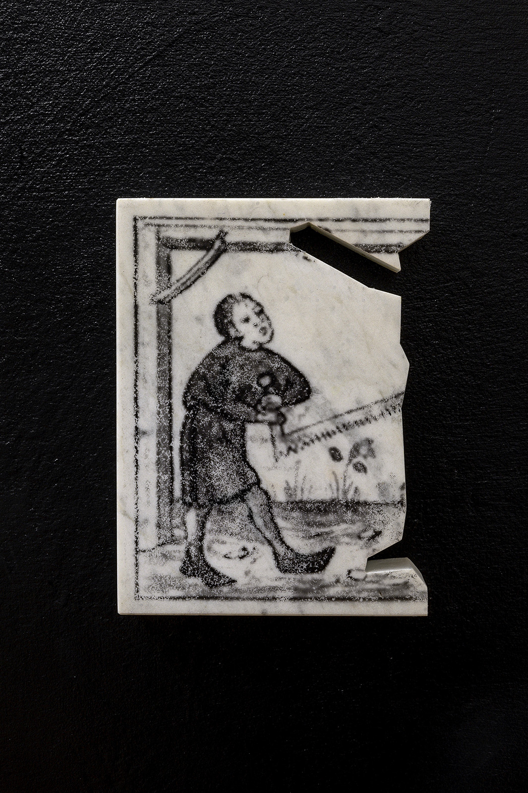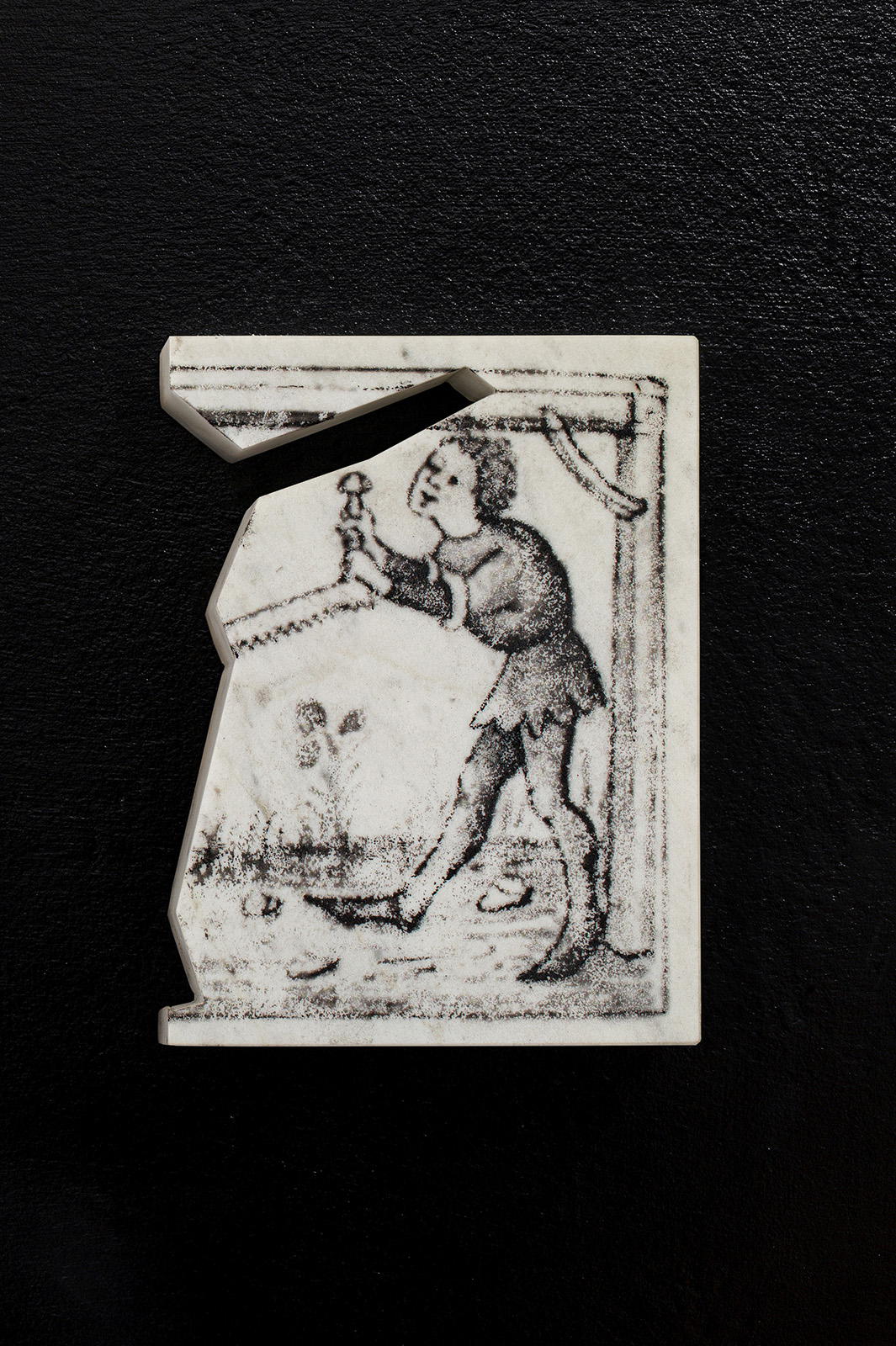 marble, enamel paint, laser-print transfer, variable size