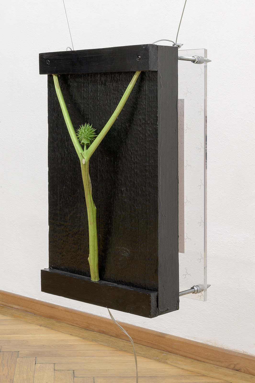 wood, enamel paint, Datura Stramonium, plexiglass, metal, vinyl, variable size
