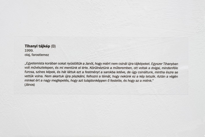 “During his years in the academy, we pestered Janó a lot about why he wasn’t making any more landscapes. Once he was in Tihany in the summer art colony, and we went to pick him up. We looked around the atelier, there were his things there: all kinds of strange, colourful pictures, and then we saw this painting left in the corner, but we pretended that we didn’t even notice it. We didn’t want to start badgering him again, to bring up the subject, that we liked this picture. Finally, he had a big surprise for us: he had actually painted this – and it was for us.” (János)