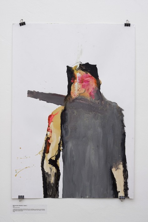 The picture is one of the Strabag Award winning Mask Series paintings made by Lilla LŐRINC in 2008.
