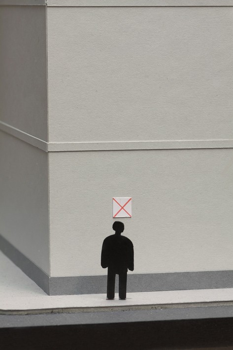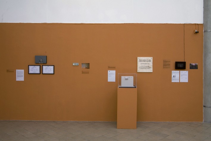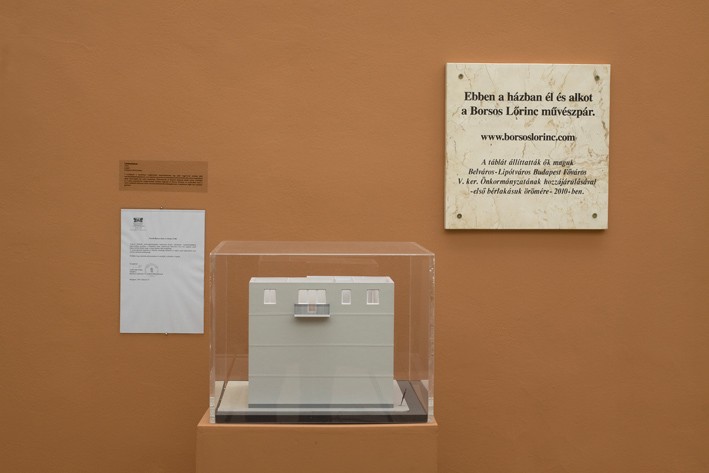 2010 | application | Marble board with the name of the Artist | 40x40x2 cm / Paper model of the building with the signed place of the board, made by Gábor BENKE | 40x40x30 cm