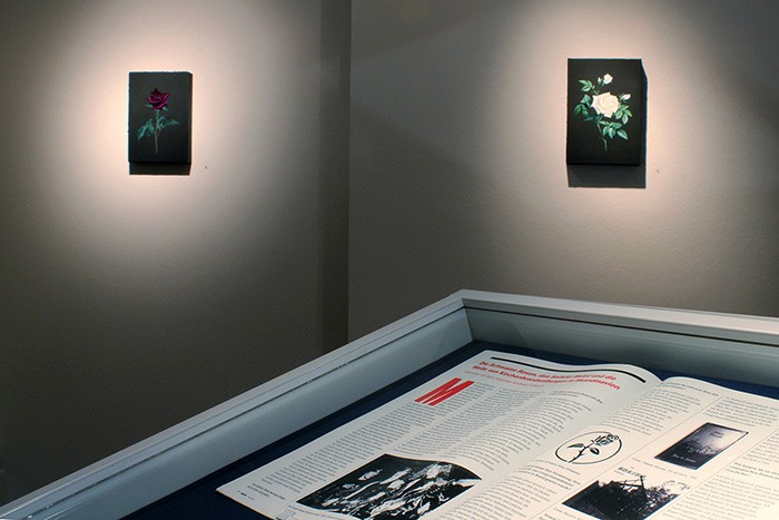The artists make no distinction between the different documents connected to the paintings; real, authenticated historical documents are featured at the exhibition as equally important and authentic as the fictional newspaper articles, blog posts or pseudo-scientific documents based on Wikipedia articles and botanical studies. In some respects, the exhibited flower paintings are buried beneath all the complementary information, political interests, revolutions, historical associations and economic aspects linked to them, as well as the doubts and motivations of the artists, the supposed or actual expectations of the art world. By completely blending the real and fictive, objective and subjective elements, Lőrinc Borsos – already a fictive identity – leaves it to the spectator how they deal with the layers superposed over the flowers. As the artists write in their piece ‘Manifesto on Goodness and Shit 1.0’: "No artist is independent of political and religious affiliation, gender identity and descent, or devoid of personal interests.” Borsos Lőrinc cannot imagine such art that is independent of its social and political context, as they also cannot imagine such art-reception. And this certainly requires continuous decisions from the artist and the viewer too. This exhibition discusses these political and aesthetic decisions and inevitable commitments. And of course, still exclusively in the language of flowers.