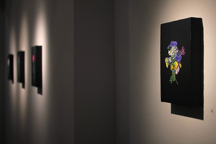 Entering the exhibition of the critical artist duo, we are greeted by finely painted floral still lifes. “What is this?” we ask. And why does it surprise us at all? Perhaps thirteen meticulously painted floral still lifes seem a little anachronistic at a progressive contemporary art exhibition, don’t they? Or is this reaction logical in view of the current Hungarian political situation? Is there such thing as non-political art? Is there art that is not politicized? Twisting the expectations ingrained in all of us, the exhibition displays thirteen politicized flowers, loaded with various – historical, economic, artistic, etc. – layers of meaning, relating to which underlying layers of the artists’ doubts and self-scrutiny are revealed. In the language of flowers.