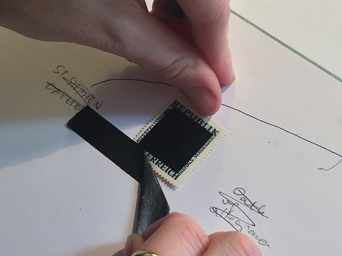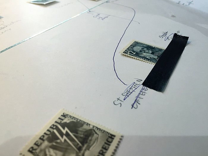 the original Niemels Vergessen Stamp series from 1946 | enamel, paspartou, glass, wooden frame | 50x70x2 cm | Photos: Miklós Sulyok