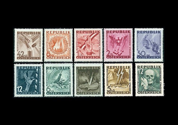 The Niemals Vergessen stamp series - which shows Austria as a victim of Nazi Germany – could be a worthy pair of the memorial statue of the German occupation raised in Budapest in 2014.The absolution of historical responsibility is performed in both works without avoiding the confrontation with the past by fictive remembering and fictive conversion.