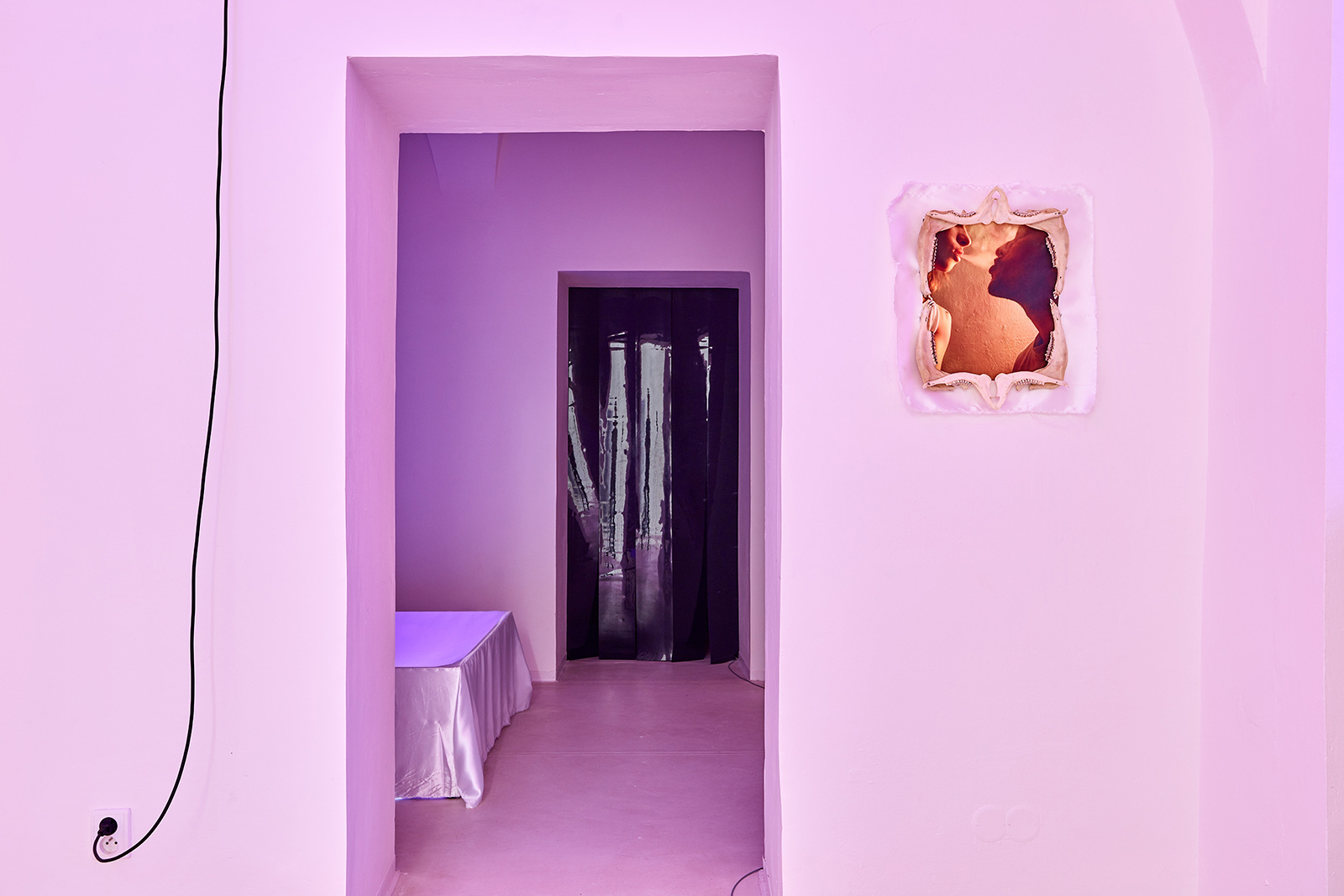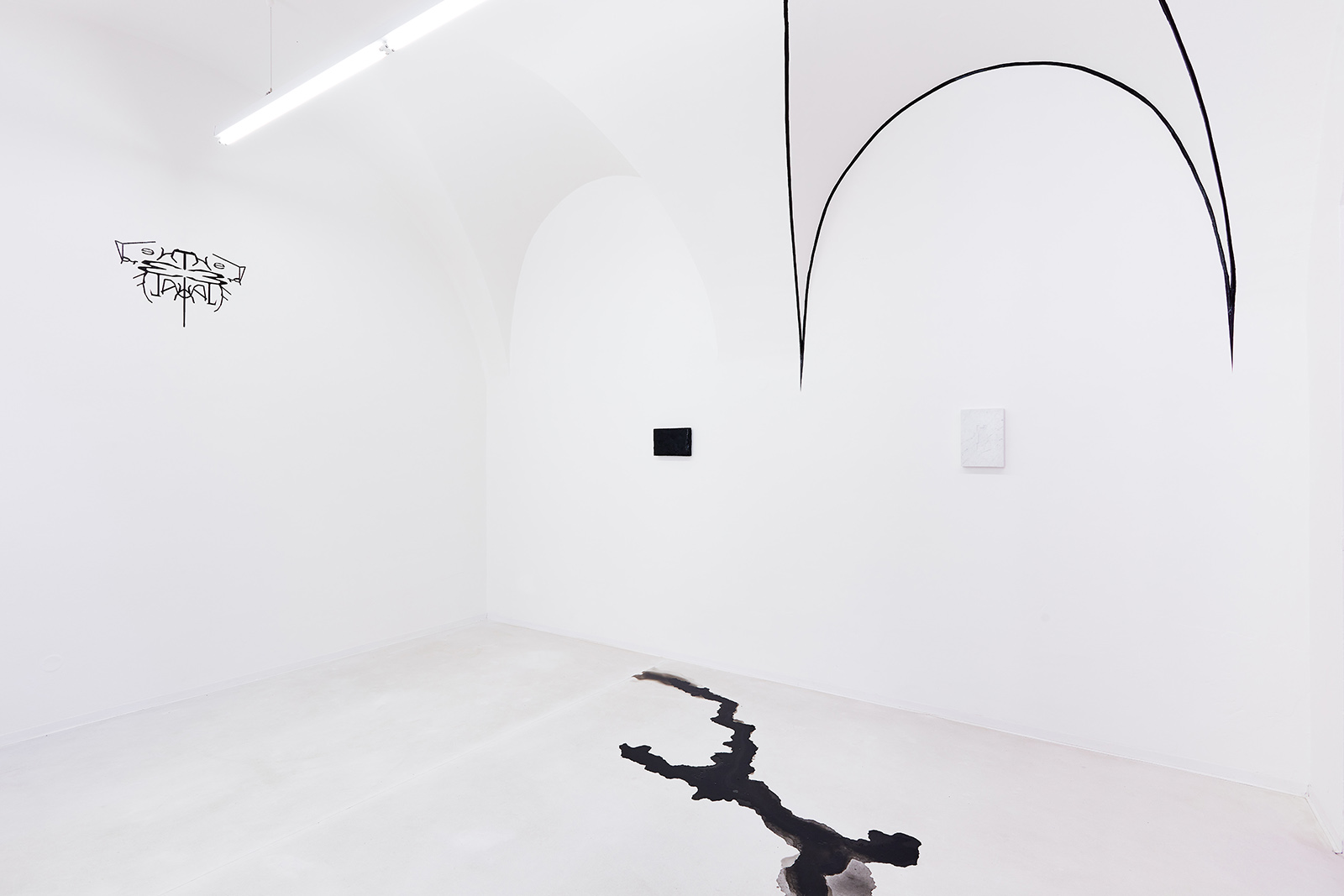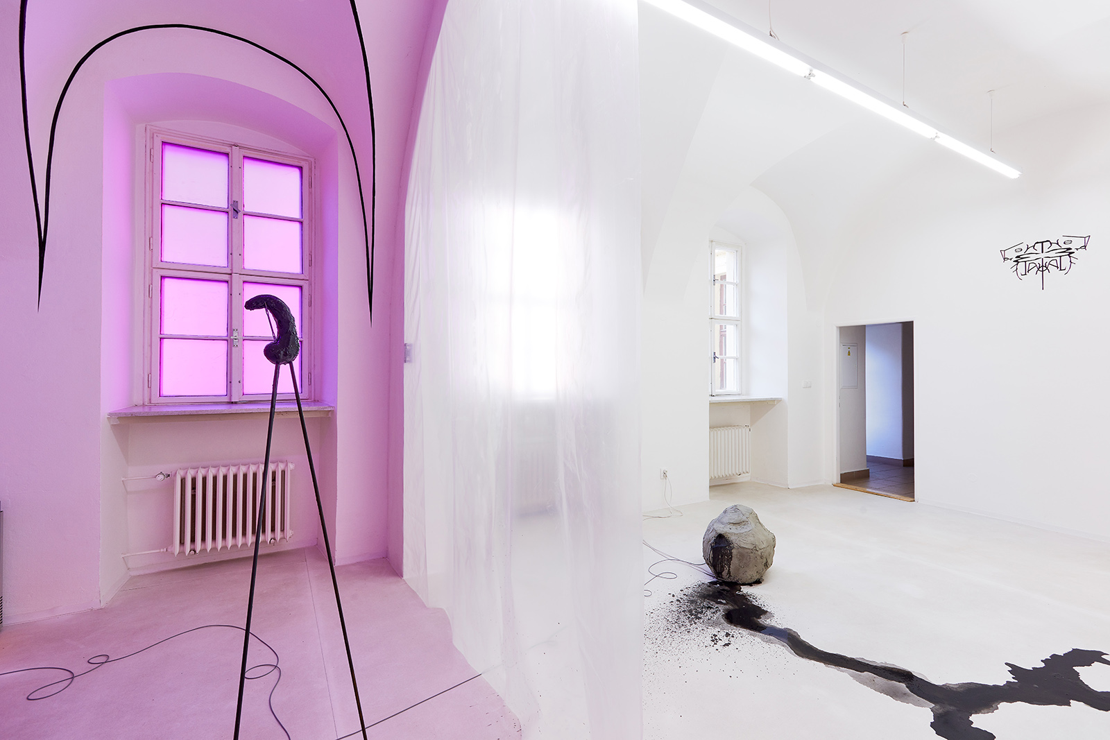 The fictive, androgynous identity engendered ten years ago and developed ever since by the collaboration of János Borsos and Lilla Lőrinc, has been effortlessly toppling such axioms of logic for years. On the occasion of their solo exhibition at Galerie TIC, building on the dichotomy of the two opposite poles while at once surpassing it, the artists make an attempt to transcend the logical systems they have constructed for themselves over the last years. In a manner leaving behind their distinctive themes, the critique of national identity, their subsequent explorations into couple’s therapy and the individual mythological universe of black enamel paint (Blaek) constructed in close connection with these, the current exhibition marks new frontiers for Lőrinc Borsos. This identity - which is a synthesis of the two poles - is now extended, as a number of artworks of the exhibition were made in collaboration with a third co-creator, Daniel Hüttler, thus giving rise to a new unit (Another Name) founded on mutual self-relinquishment.