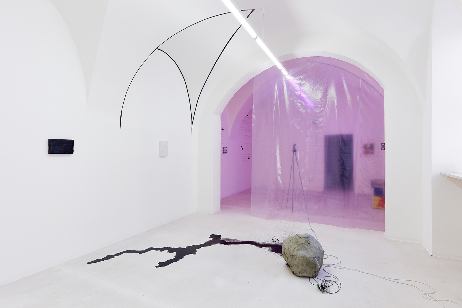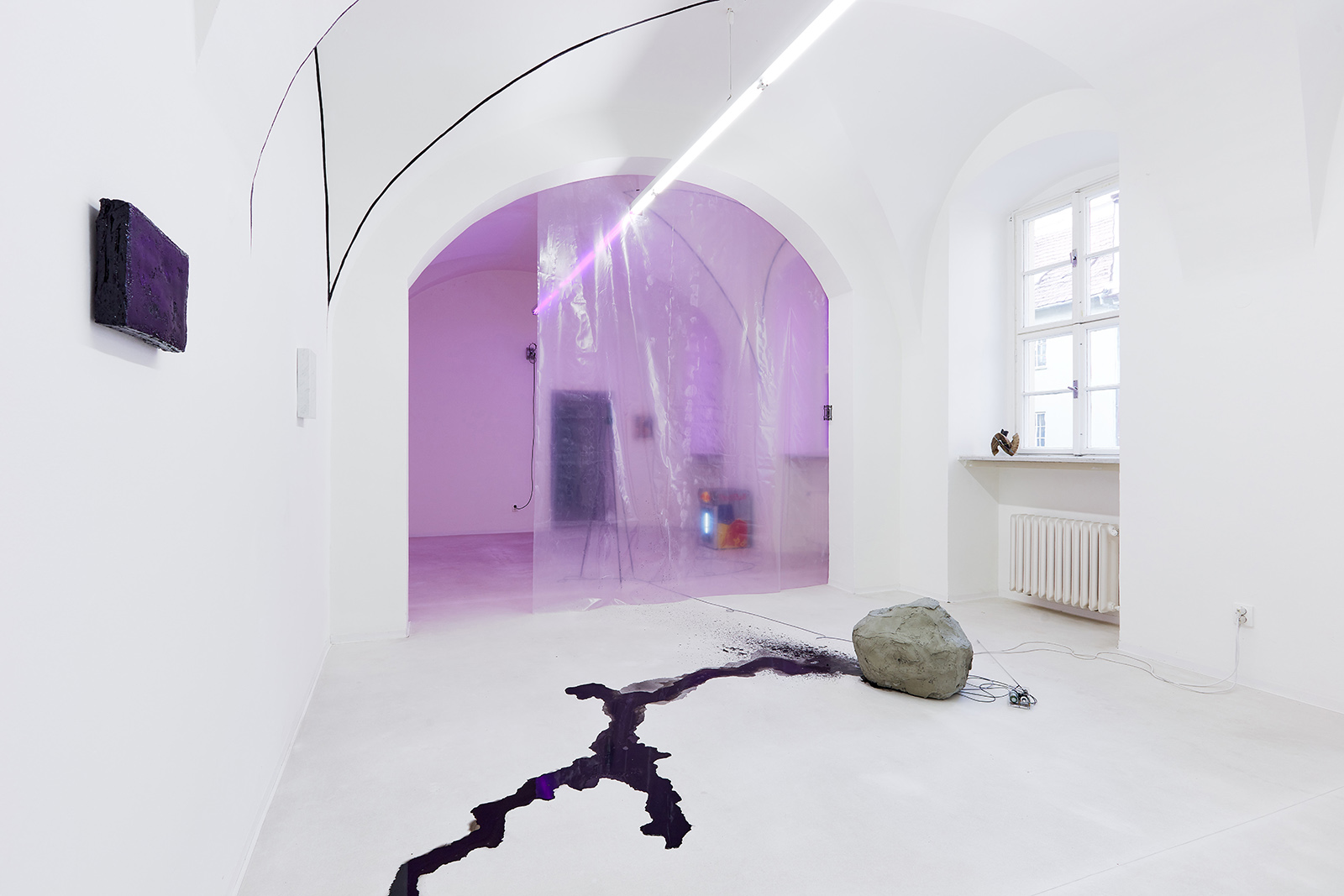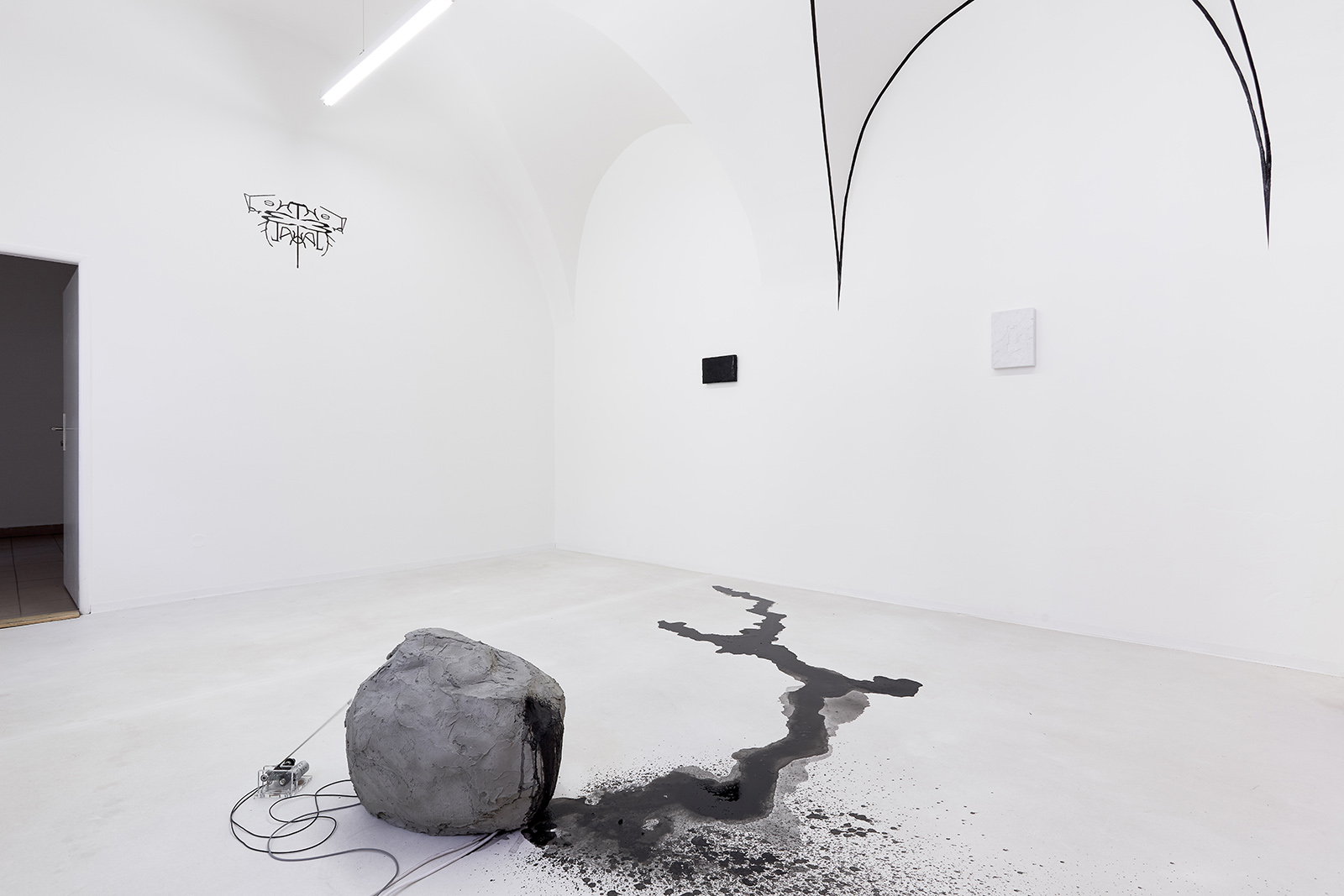 The fictive, androgynous identity engendered ten years ago and developed ever since by the collaboration of János Borsos and Lilla Lőrinc, has been effortlessly toppling such axioms of logic for years. On the occasion of their solo exhibition at Galerie TIC, building on the dichotomy of the two opposite poles while at once surpassing it, the artists make an attempt to transcend the logical systems they have constructed for themselves over the last years. In a manner leaving behind their distinctive themes, the critique of national identity, their subsequent explorations into couple’s therapy and the individual mythological universe of black enamel paint (Blaek) constructed in close connection with these, the current exhibition marks new frontiers for Lőrinc Borsos. This identity - which is a synthesis of the two poles - is now extended, as a number of artworks of the exhibition were made in collaboration with a third co-creator, Daniel Hüttler, thus giving rise to a new unit (Another Name) founded on mutual self-relinquishment.