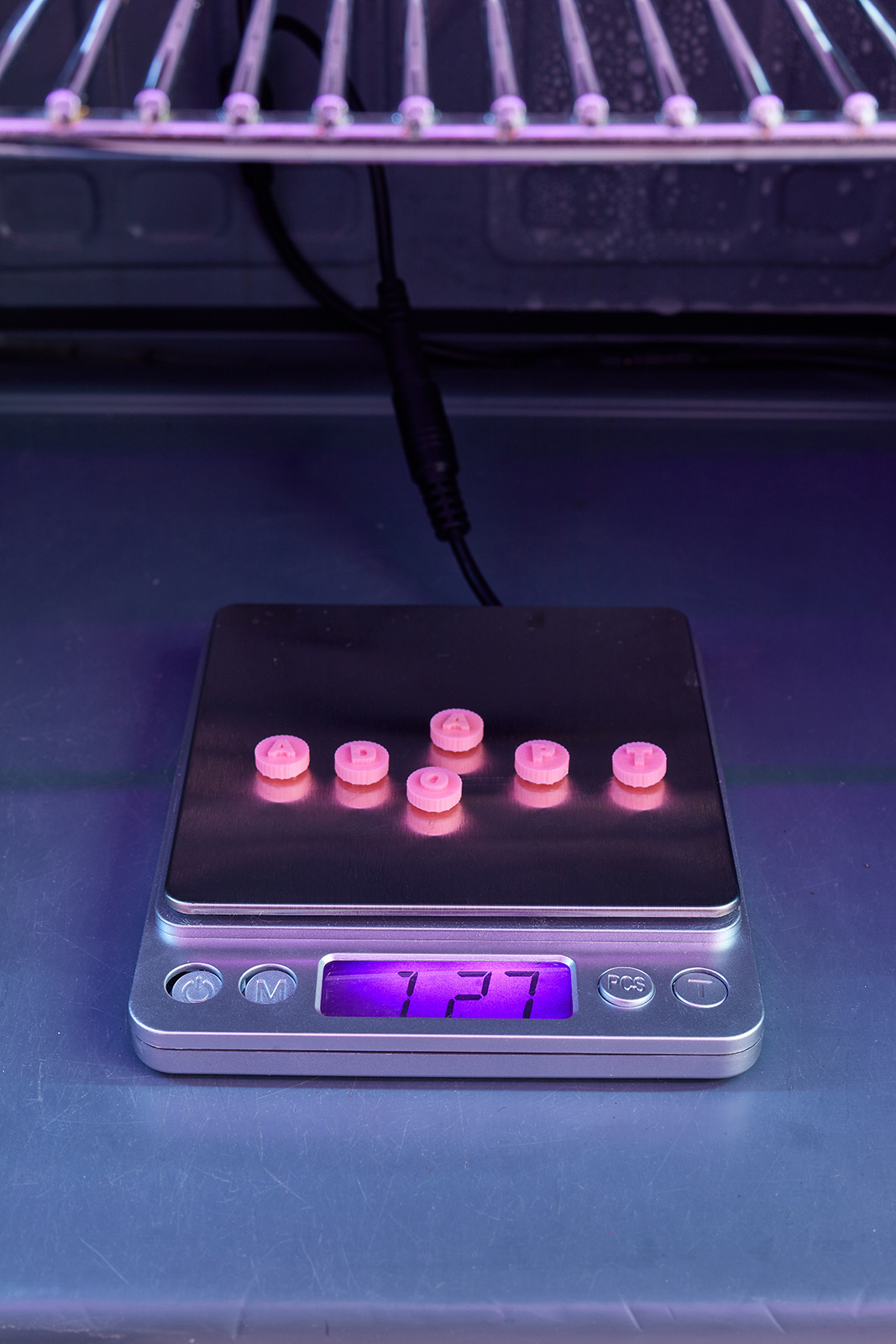 6 pieces of PFL objects, 1x1x0,5 mm each, digital scale